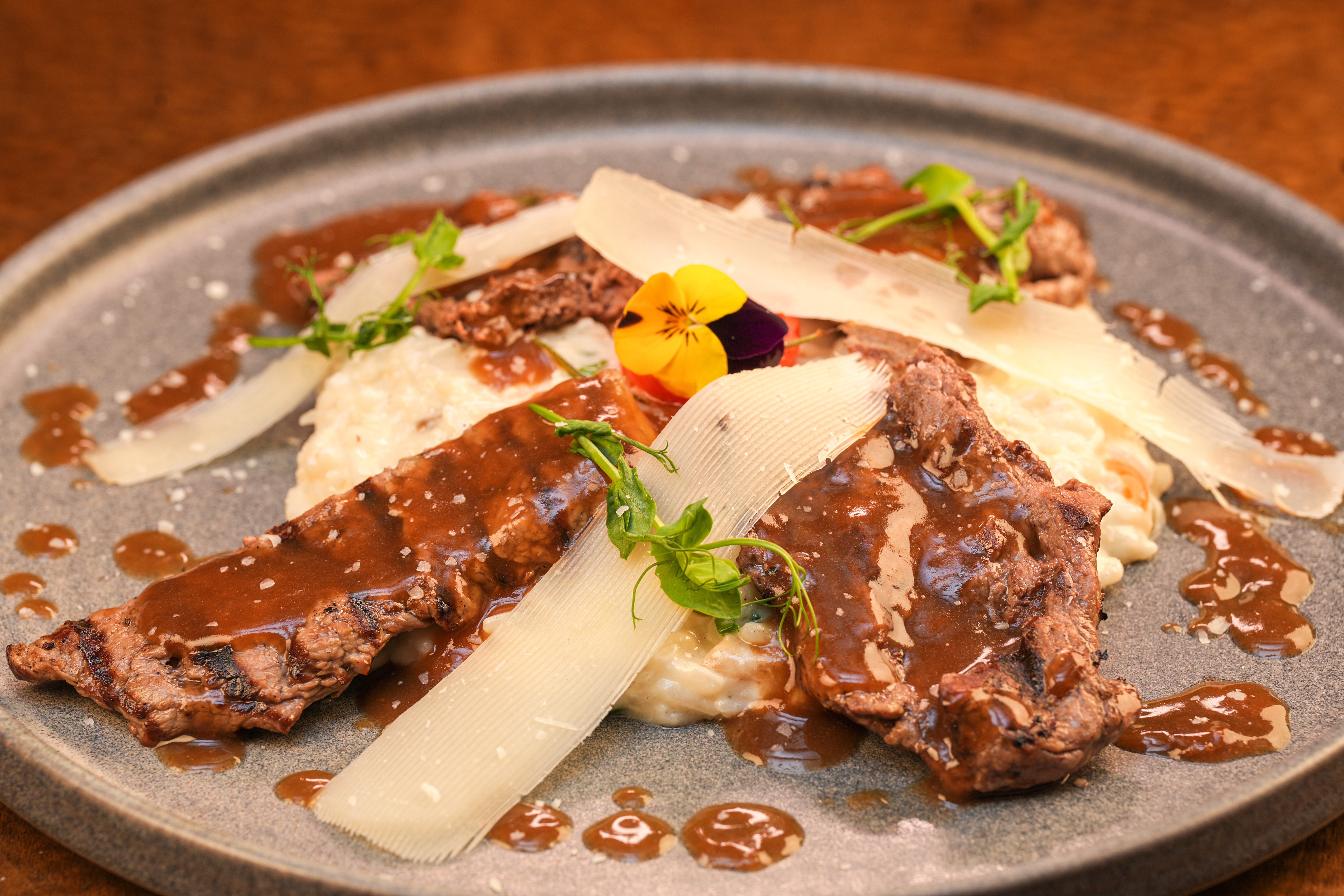 Risotto ve demi-glass servis edilir.