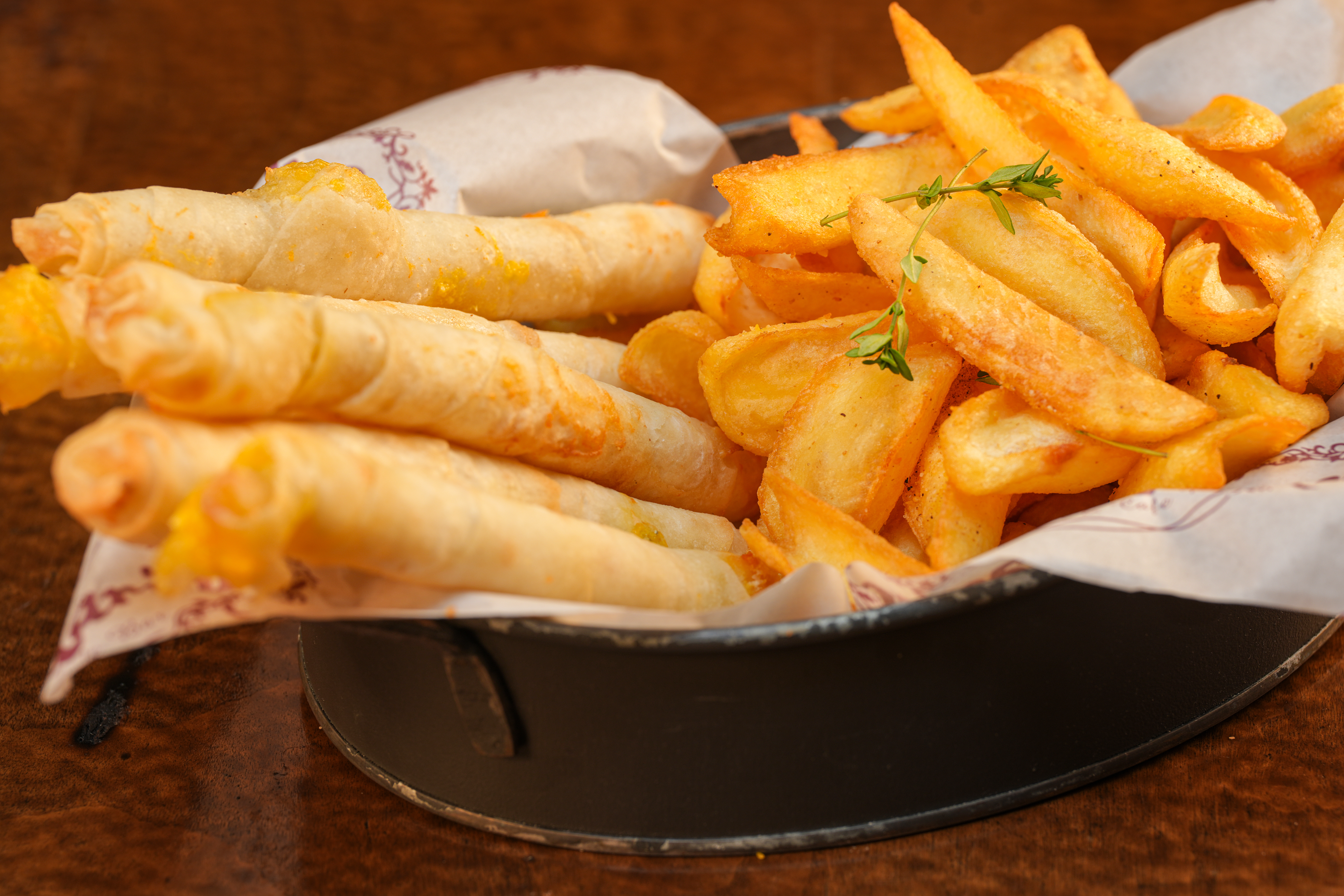 patates kızartması eşliğinde servis edilir.
